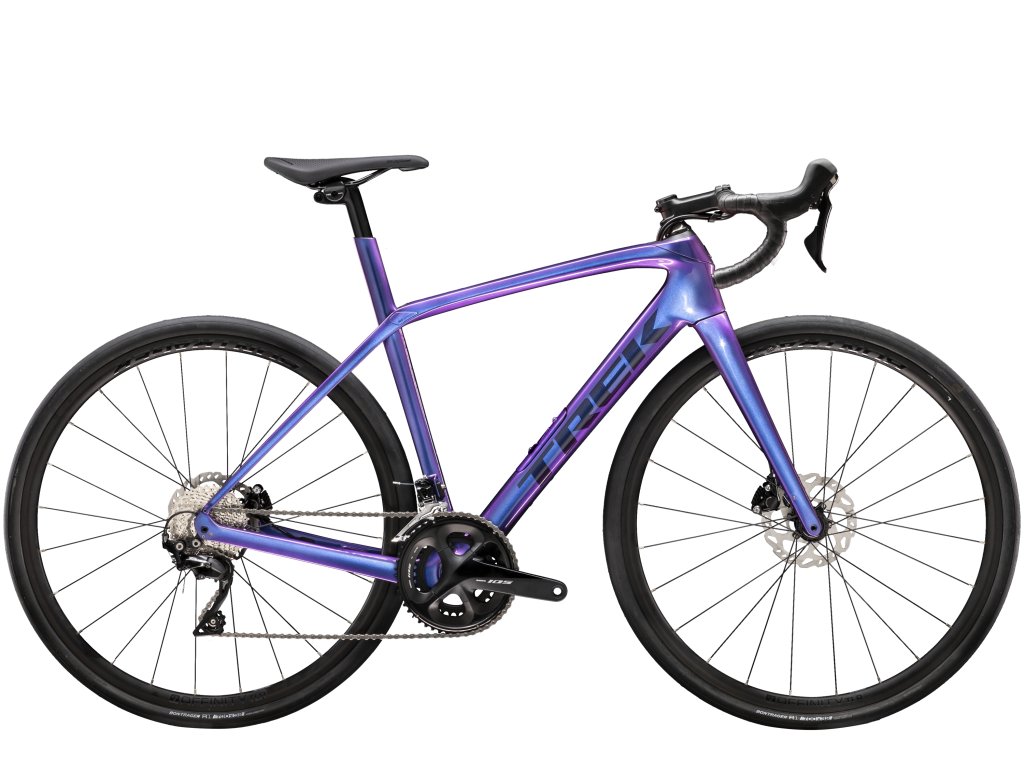 Karbon, pohodlí, schopnost. Domane SL 5 je kolo na dlouhé vyjížďky s karbonovým rámem, stabilní vytrvalostní geometrií a předním a zadním prvkem IsoSpeed vyhlazujícím nerovnosti povrchu. Rovněž získáte výhodu špičkového pohonu Shimano 105 a výkonných kotoučových brzd, které umožňují použití širších plášťů.
