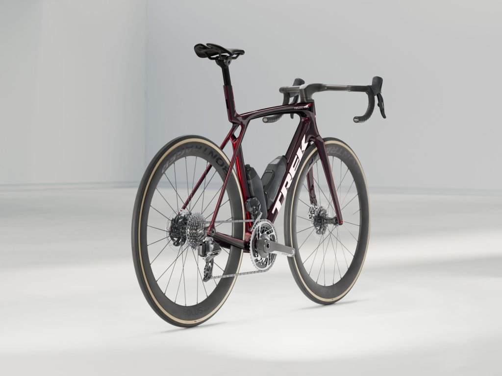 Neuvěřitelně lehký rám z našeho nejlepšího karbonu OCLV řady 900 s aerodynamicky tvarovanými trubkami a technologií IsoFlow zaručující pohodlí a aerodynamickými lahvemi a košíky RSL, které šetří watty. Bezdrátové elektronické řazení 2x12 SRAM RED AXS předchozí generace s wattmetrem pro ještě výkonnější trénink. Univerzální patka přehazovačky, takže lze náhradu sehnat kdekoli. Stroj kompletují bezdušová karbonová kola Bontrager Aeolus Pro 51 a kombinace řídítek a představce Trek Aero RSL.