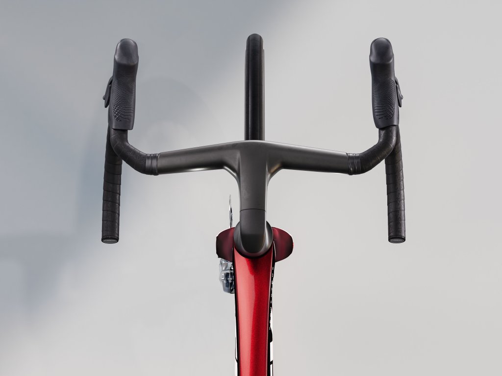 Nová jednodílná kombinace řídítek a představce je lehčí, aerodynamičtější a ergonomičtější než u předchozího modelu. Nahoře (hoods) jsou řídítka o 3 cm užší než dole v obloucích (drops), takže si lze upravit pozici a zaměřit se na aerodynamiku (na pákách) nebo výkon (v obloucích).